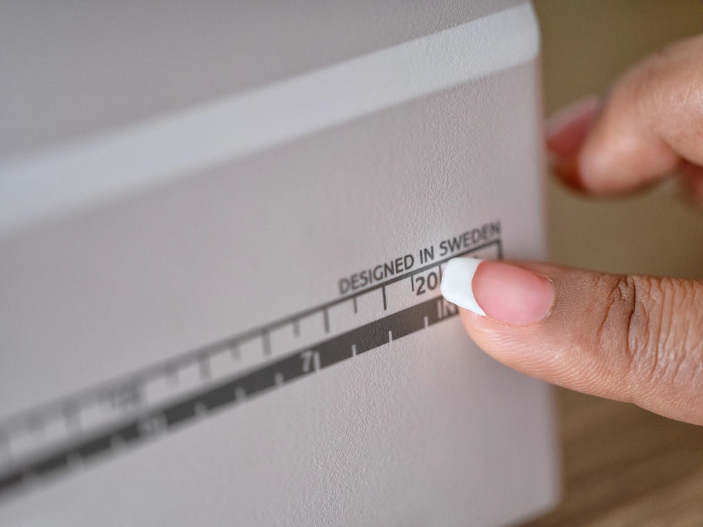 La règle cm/pouces sur la machine vous permet de mesurer facilement votre bord-côte et élastique.