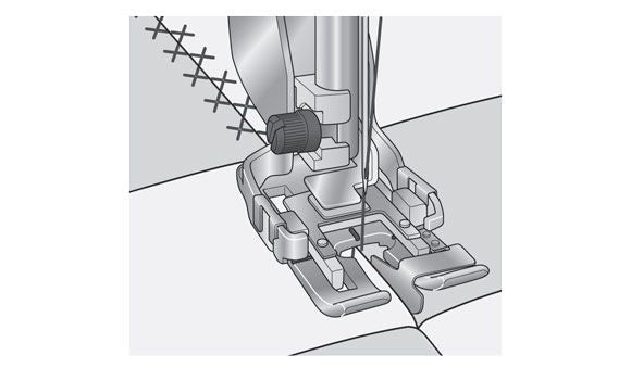 Le double entraînement interchangeable avec pieds-de-biche interchangeables est conçu pour entraîner le tissu et/ou le molleton de manière régulière. Il est idéal pour le Matelassage, la couture du velours, la plupart des tissus extensibles, les imitations cuir et les tissus qui demandent un assortiment précis des motifs. Utilisez le pied guide fantaisie interchangeable quand vous piquez dans une ligne de couture lorsque vous cousez un point décoratif. Le guide métallique au centre du pied vous aide à guider votre tissu.