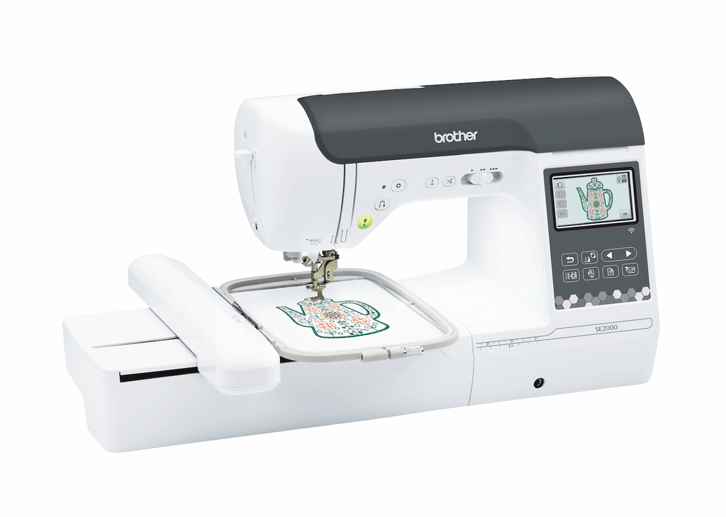 - Grand espace de travail. Avec sa grande aire de broderie de 5 x 7 po et sa compatibilité avec le cadre de broderie magnétique de 4 po x 7 po de Brother, la SE2000 plaira tant aux amateurs de broderie débutants que chevronnés.
