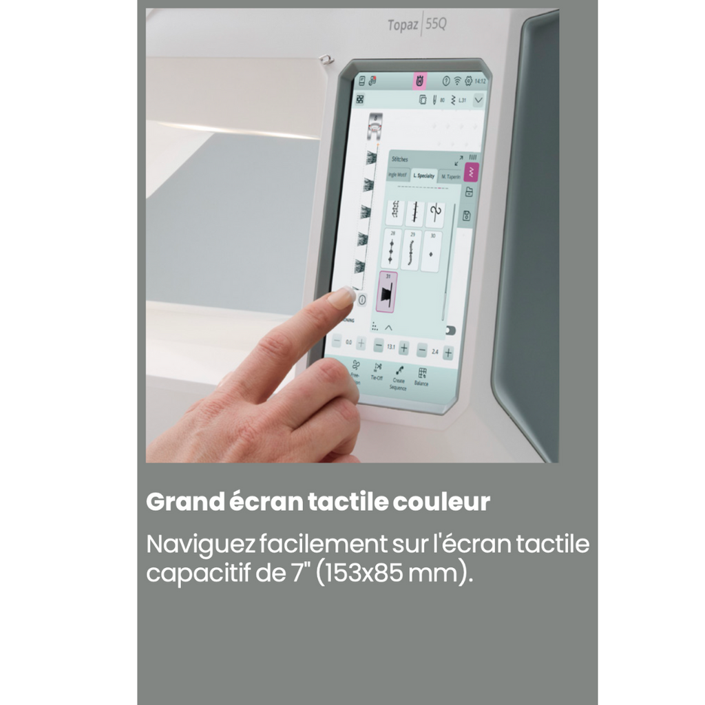 La HUSQVARNA VIKING TOPAZ 55Q est une machine à coudre est conçue pour les couturiers qui souhaitent perfectionner leurs compétences et bénéficier d'une machine à coudre vraiment remarquable. Il est également parfait pour les amateurs de quilting qui exigent précision, espace suffisant et contrôle.